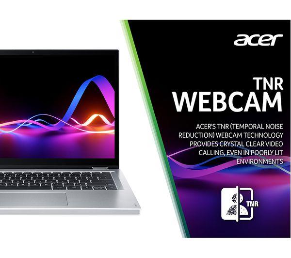 No need to pick between a laptop and a tablet. The 360° hinge on this Acer Aspire 3 Spin lets you easily turn your laptop into a tablet whenever you want. Its 14" Full HD touchscreen provides amazing colours and detail, so it's perfect for creative work and catching up on Netflix. It's quick too. The 13th Gen Intel® Core™ i3 processor's got enough performance to handle all your essential apps without a hiccup.