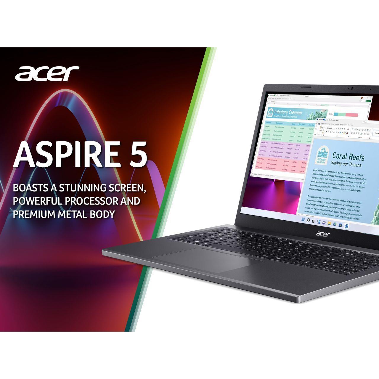What's included: Features: The premium Acer Aspire 5 packs powerful hardware into a sleek body for great all-round performance. With a powerful Intel Core i5 CPU and 16GB of RAM, the Aspire 5 can easily handle a wide range of demanding workloads. You also get a huge 1TB SSD which gives you plenty of space to store all your apps, documents & media. The Aspire 5's 15.6 screen features a Full HD resolution of 1920x1080, which provides plenty of sharp detail. The screen is also equipped with Acer's BlueLightShield technology to help reduce eye strain and fatigue. Premium Design – The Aspire 5's metal chassis looks sleek & stylish and features a premium backlit keyboard. Windows Hello security - The integrated biometric fingerprint reader is Windows Hello certified, to ensure your sensitive data is kept completely safe.