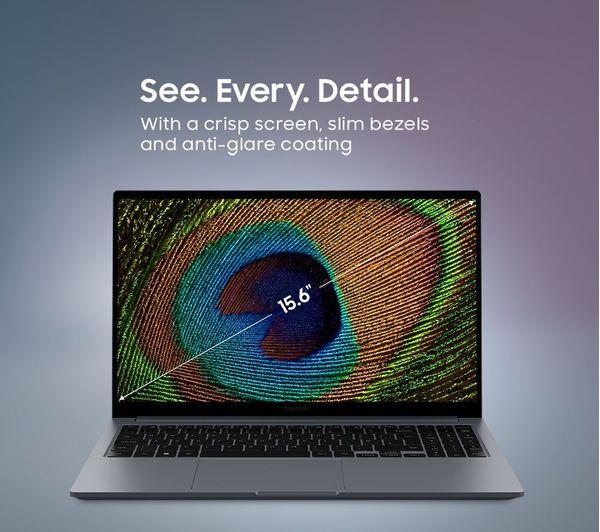 The Galaxy Book4 might be super-thin, but it packs all the power you need to work and play. Hiding inside is a 13th gen Intel® Core™ i5 processor supported by Intel® Iris® Xe graphics. Together they make quick work of all your apps and tasks. The 15.6" Full HD screen is big, sharp and bright enough, so you can work comfortably wherever you are. And with the massive 54 Wh battery, you can head out without worrying about the charger.