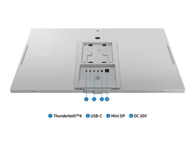 The Samsung ViewFinity S9 offers advanced connectivity options with Thunderbolt 4 and USB-C ports, supporting power delivery up to 90 watts, allowing you to charge devices directly from the monitor. This feature, along with its built-in USB hub, provides a tidy and efficient workspace.