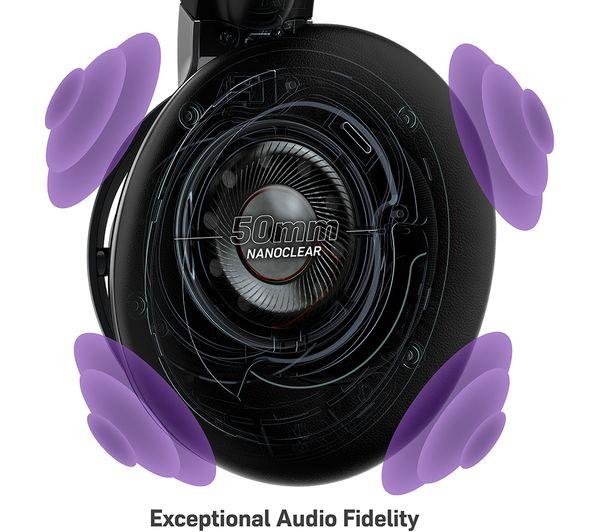 The Stealth Pro makes sure you're the one creeping up on enemies, not the other way around. That's because its Superhuman Hearing setting boosts the sound of footsteps, doors and other dead giveaways. And there will nothing getting between you and your action because there's Active Noise-Cancellation onboard. It's adjustable too, so you can toggle it down to transparency and keep an ear on the outside world if you really have to. And because epic adventures need epic sound, you get some next-level immersion from the 50 mm Nanoclear drivers.