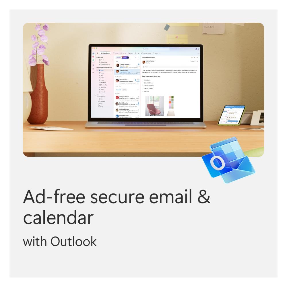 With the extra online storage Microsoft 365 Personal provides with OneDrive you always have your important documents and photos with you. And they're always up to date, whether you create, edit, or share them from your PC, Mac, iPad, Windows tablet, or smartphone. Microsoft 365 and OneDrive keep your files in sync across your devices, and with just a click you can share files, even big ones, either by sending someone a link to a file or publishing it to Facebook.