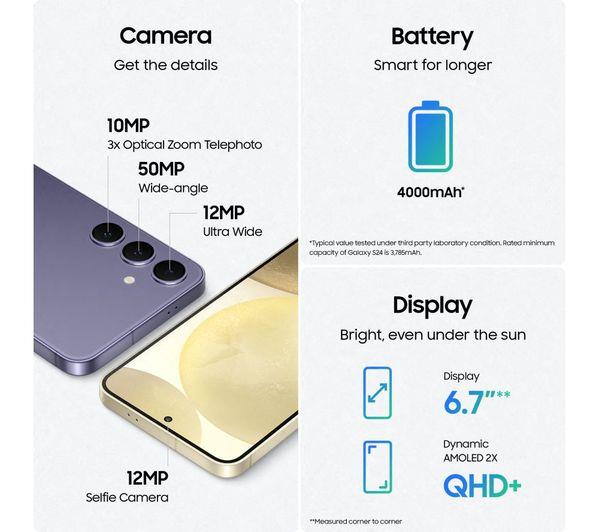- Splashes or rain showers don't need to worry you – the S24 has an IP68 rating