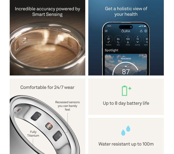Features- Get to know your body better with the Oura Ring 4. It's got discreet sensors that track your sleep, readiness, and daily activity. With an Oura Membership (sold separately), you can access features like in-depth sleep analysis, personalised health insights, and live heart rate monitoring. Whether you're cleaning the house or hitting the elliptical at the gym, it automatically detects your activity and gives you credits. Plus, the daily Readiness Score helps you decide when to push yourself or take it easy.