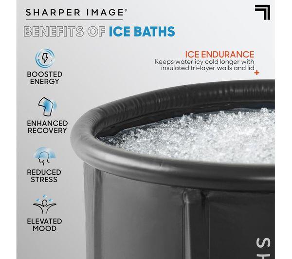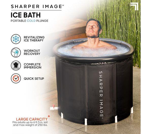 - This Sharper Image ice bath helps reduce muscle soreness and fatigue through cold immersion therapy