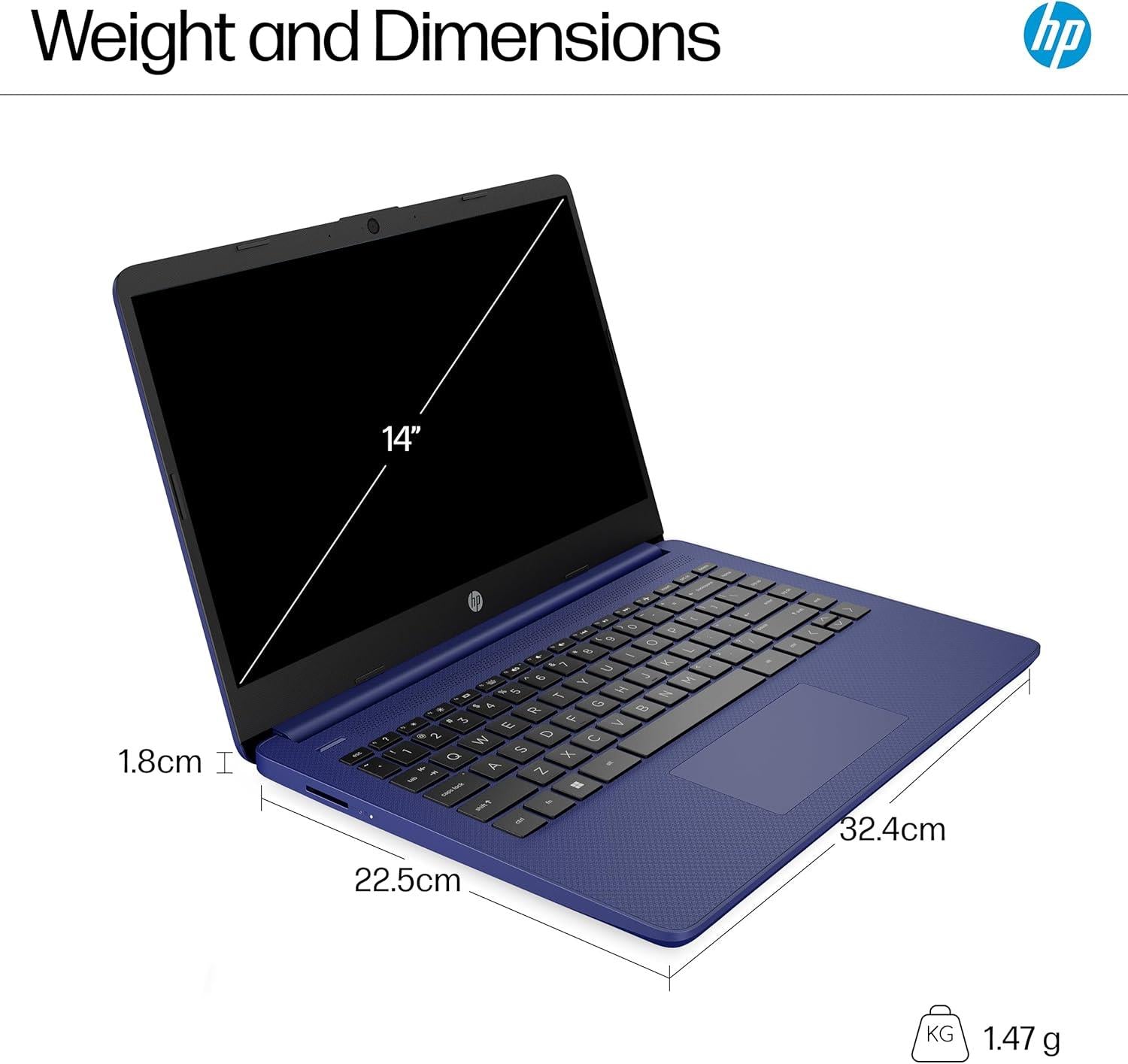 HP 14-dq6001na 14 Inch Intel N150 4GB RAM 128GB UFS Laptop - Blue