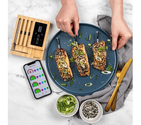This MEATER Block is a wireless meat thermometer that makes cooking a breeze. It connects using WiFi, and you'll stay connected thanks to the MEATER cloud. There are four probes, each with two sensors. That means you can monitor both the internal meat temperature (up to 100°C) and temperature of your oven. Need a helping hand? The Guided Cook System walks you through every step of the cooking process, so you'll get perfect results.