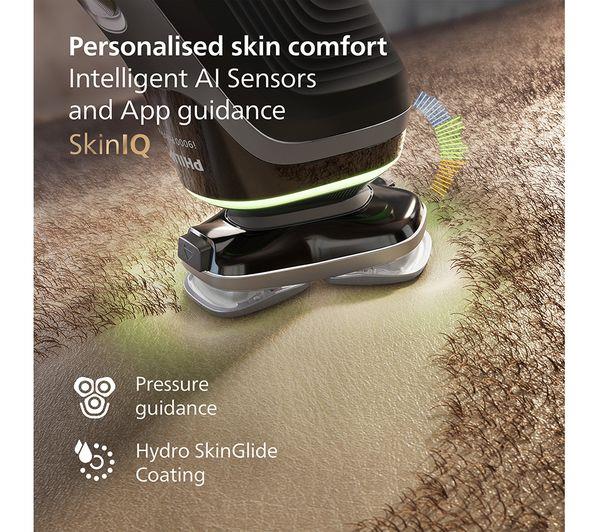The Dual SteelPrecision razor Blades rotate 360 degrees to cut hair in any direction with 7 million motions per second to ensure an efficient shave on a 1, 3, or 7-day beard. SkinIQ technology powered by AI delivers intelligent skin comfort personalised to you.