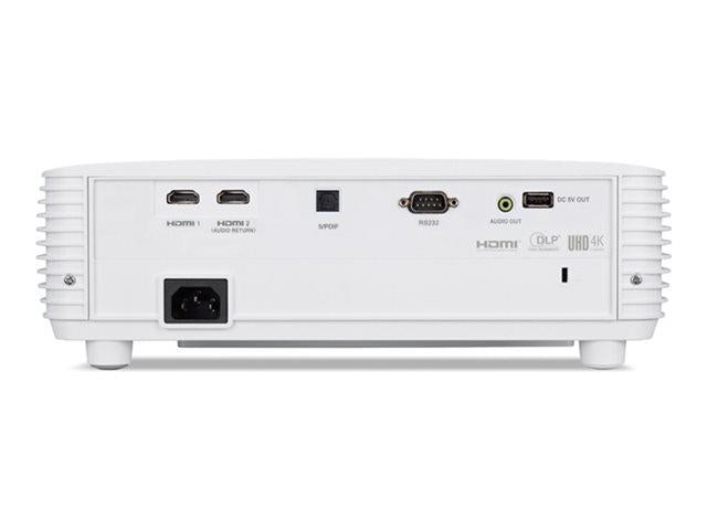 What is included- Features- Discover the Acer H6830BD projector, a high-performance digital projector that brings your visuals to life with stunning clarity and color. With a brightness of 3800 lumens and a high contrast ratio, every image is rendered in vivid detail, supported by a colour support of 1.07 billion colours. The 4K HD resolution ensures that whether you're watching movies, presenting projects, or enjoying live sports, the visuals are incredibly sharp and immersive. This projector is not just about visuals; it also offers a robust audio experience with its built-in 10 W speaker, making it a comprehensive solution for all your presentation and entertainment needs. Connectivity is a breeze, thanks to its versatile interface options including HDMI, USB, and more, allowing you to easily connect a variety of devices. Moreover, its long lamp life and energy-efficient features ensure that the projector is both durable and cost-effective, making it an ideal choice for both home and professional use. The projector that turns your living room into a movie theater. Feast on popcorn while your eyes feast on an up to 4K UHD display. Color preservation is made possible with exclusive ColorBoost 3D, Rec. 709, and more. Big match coming up? Football Mode is optimized to make the next 90 minutes the most immersive and life-like as possible. Stay in-the-action with up to 1080p 240Hz, delivering a hyper-smooth display every second. Get the most out of your projector's images with professional calibration from an ISF-qualified technician. Project with precision and avoid setup problems. Using Image Shift and digital zoom, you can shift the image precisely to fit your screen without having to alter the existing mounting location. Quickly and easily adjust distortion in each individual corner with 4 Corner Correction. Immerse yourself in a whole new environment with unprecedented detail and color accuracy. 4K UHD projections show details in 8.3million pixels to give a four times higher resolution than Full HD. See crystal-clear, vibrant images from a distance in daylight or medium to large rooms with up to 4,000 lumens of brightness. Finding the right angle for your presentation is easier with keystone correction, which corrects horizontal and vertical distortion. Enjoy consistent, natural colors with ColorSafe II technology, which controls the dynamic RGB levels to prevent colour decay. Acer LumiSense adjusts the image brightness and colour saturation based on the content you're viewing. Protect your eyes from unnecessary strain by utilizing Acer BlueLightShield technology. Acer H6830BD - DLP projector - portable - 3D - 3800 lumens - 3840 x 2160 - 16:9 - 4K