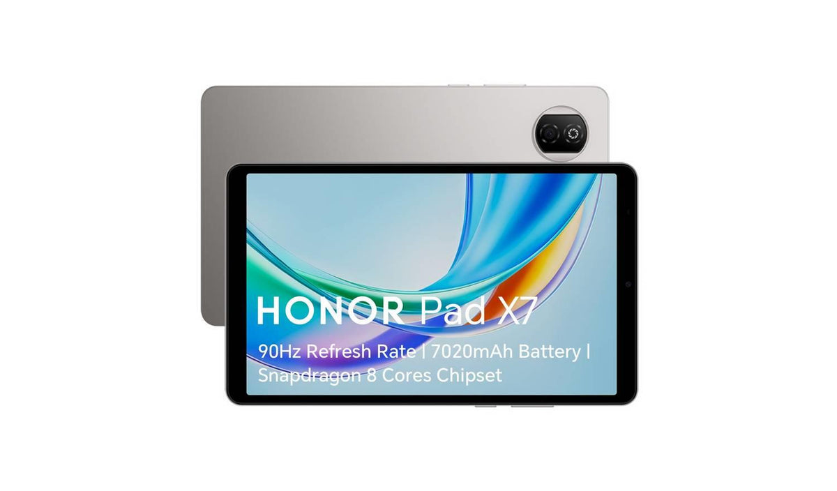 What's Included- Features- The HONOR Pad X7 combines a sleek, lightweight design with a powerful 7020mAh battery offering up to 56 days of standby and 18W fast charging. It's 8.7-inch Eye Comfort Display features a 90Hz refresh rate and TUV Rheinland certification for reduced eye strain. Powered by the Snapdragon 680 chipset with up to 4GB RAM and 64GB storage (expandable to 1TB). Ideal for productivity and entertainment on the go, the HONOR Pad X7 delivers reliable performance and immersive visuals in a stylish grey finish. 7020mAh Massive Battery. Your Extra Power Reserve. Equipped with a 7020mAh massive battery, one of the largest among the same size, providing an impressive 56 days of standby time. Additionally, it supports 18W fast charging and 10W reverse charging, allowing it to serve as an extra power reserve for other devices. Snapdragon 8 Cores Chipset. Advanced 6nm Process Technology for Enhanced Performance. Utilising octad 6nm advanced process, powerful cores, with a max clock speed of 2.4GHz, ensuring ample performance in a compact size for a smoother user experience. The HONOR Pad X7 boasts an 8.7-inch Eye Comfort Display with a stunning 90Hz refresh rate, 16.7 million colours, and a sharp 1500:1 contrast ratio. Users enjoy vibrant, detailed, and fluid visuals ideal for streaming, gaming, and productivity tasks.