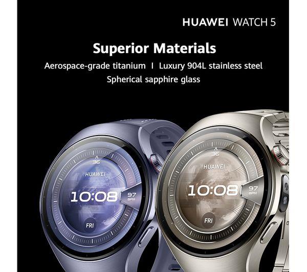 What's Included- Features- The Huawei Watch 5 keeps you in the know. You'll get super accurate health insights with multi-sensing X-TAP technology, so you can keep tabs on your heart rate, SpO2, and stress levels. TruSense tracks over 60 health and fitness indicators, including emotional wellbeing, helping you adjust your focus and goals. It's also loaded with over 100 sports modes, from running to skiing, and has a 5 ATM water resistance, making it great for swimming.