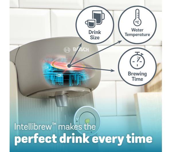 Why put up with disappointingly weak coffee? Give it some pep with the IntensityBoost on this Tassimo Finesse coffee machine. It'll give your coffee the extra kick you're craving. You'll always enjoy balanced taste and aroma with Intellibrew technology. It uses just the right amount of water and the ideal temperature. And T DISCs have over 60 varieties of coffee to choose from. Enjoy delicious blends from Costa, Kenko, L'OR and many others.